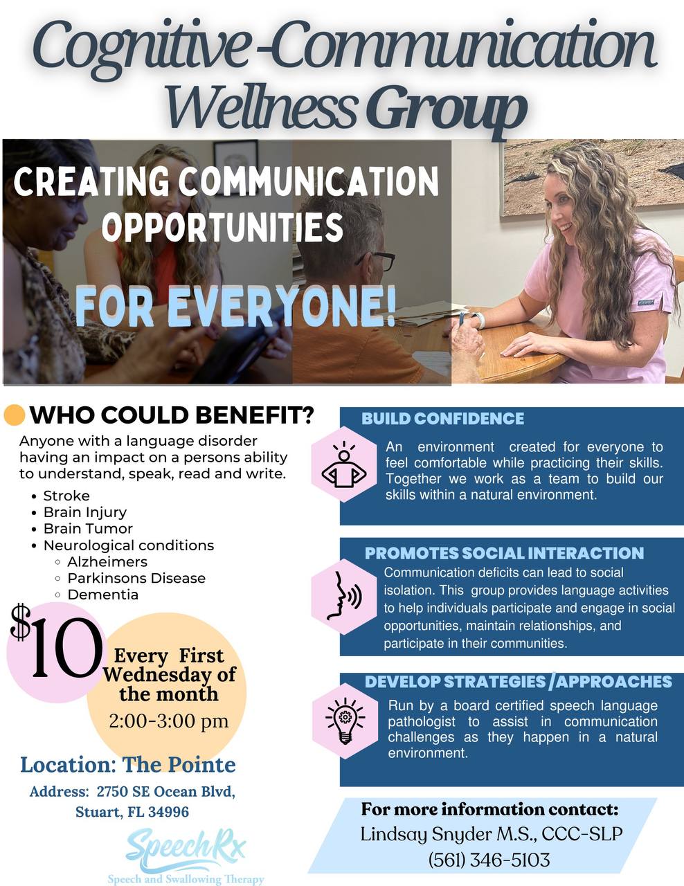 Monthly communication wellness group for adults with changes in thinking or communication after stroke, brain injury, or neurological conditions.